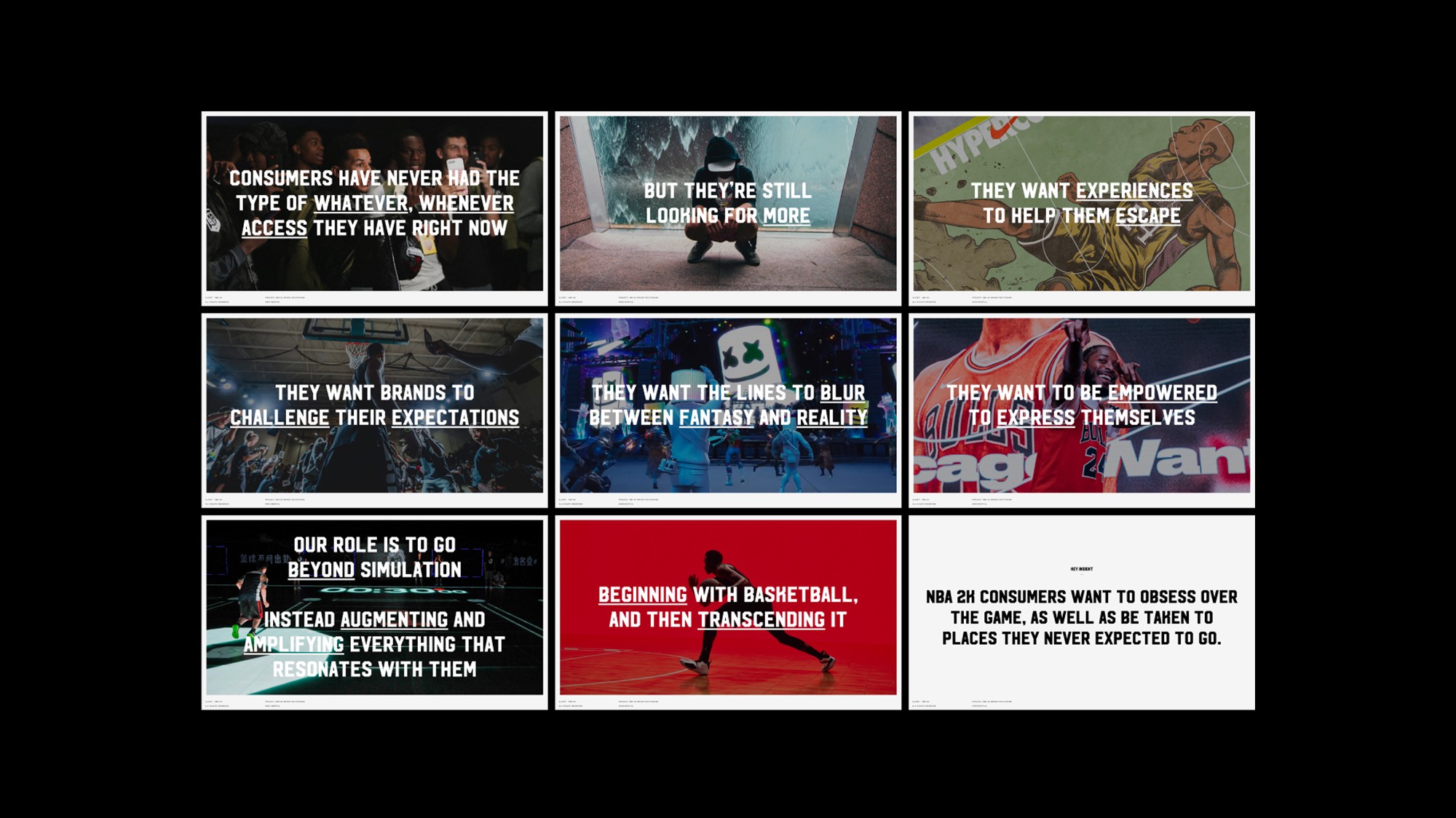 Our work focused on aligning the brand’s competitive intensity with its cultural influence. We clarified the core idea that NBA 2K isn’t simply simulating the game — it is the game for a new generation. From community and creators to fashion, music, and street culture, the strategy positions NBA 2K as a living ecosystem that reflects how basketball shows up in the world today.
