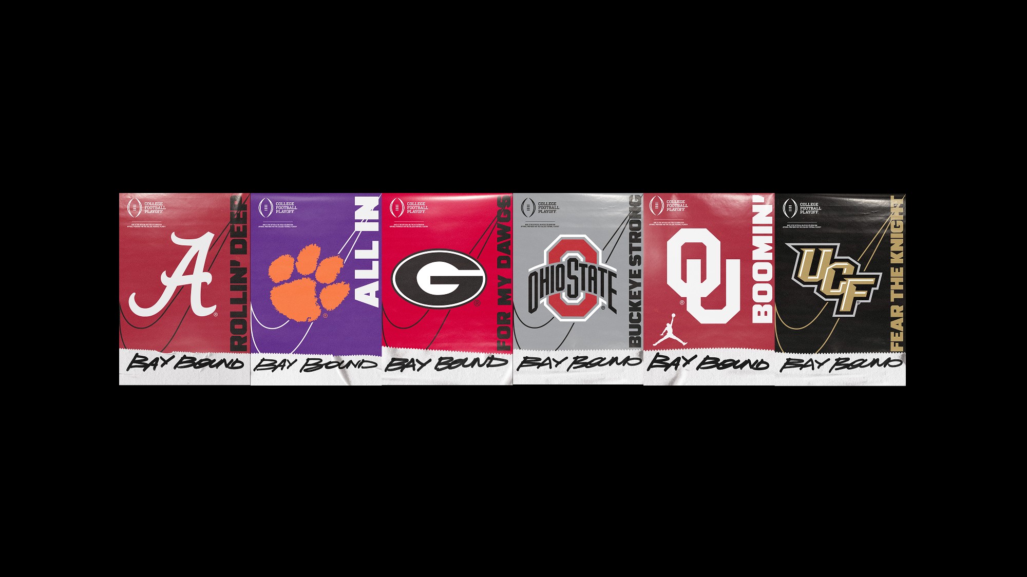 Through expressive typography, high-impact graphics, and scalable compositions, the work translates competition into atmosphere. Designed to live across playoff environments and communications, the result is a campaign that amplifies the stakes and celebrates the energy of college football when everything is on the line.