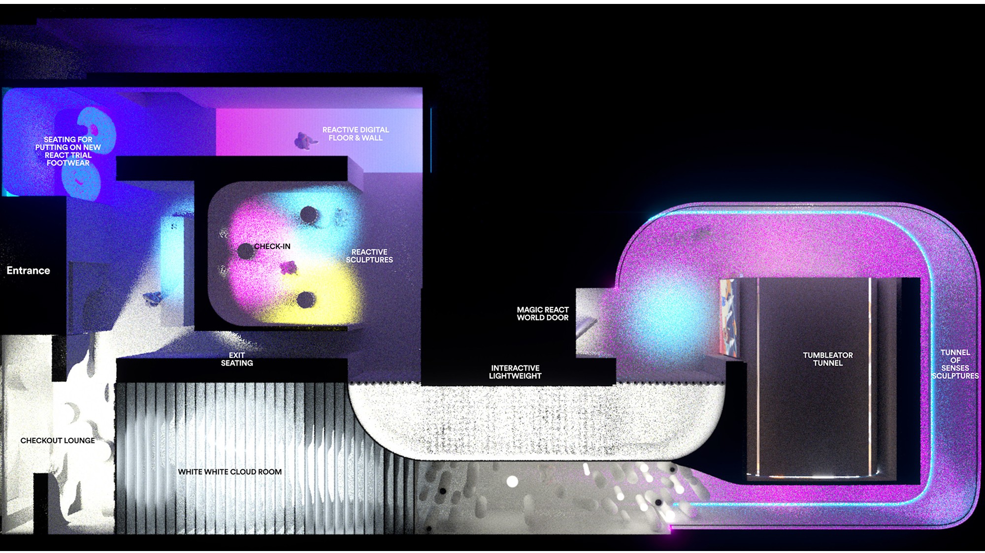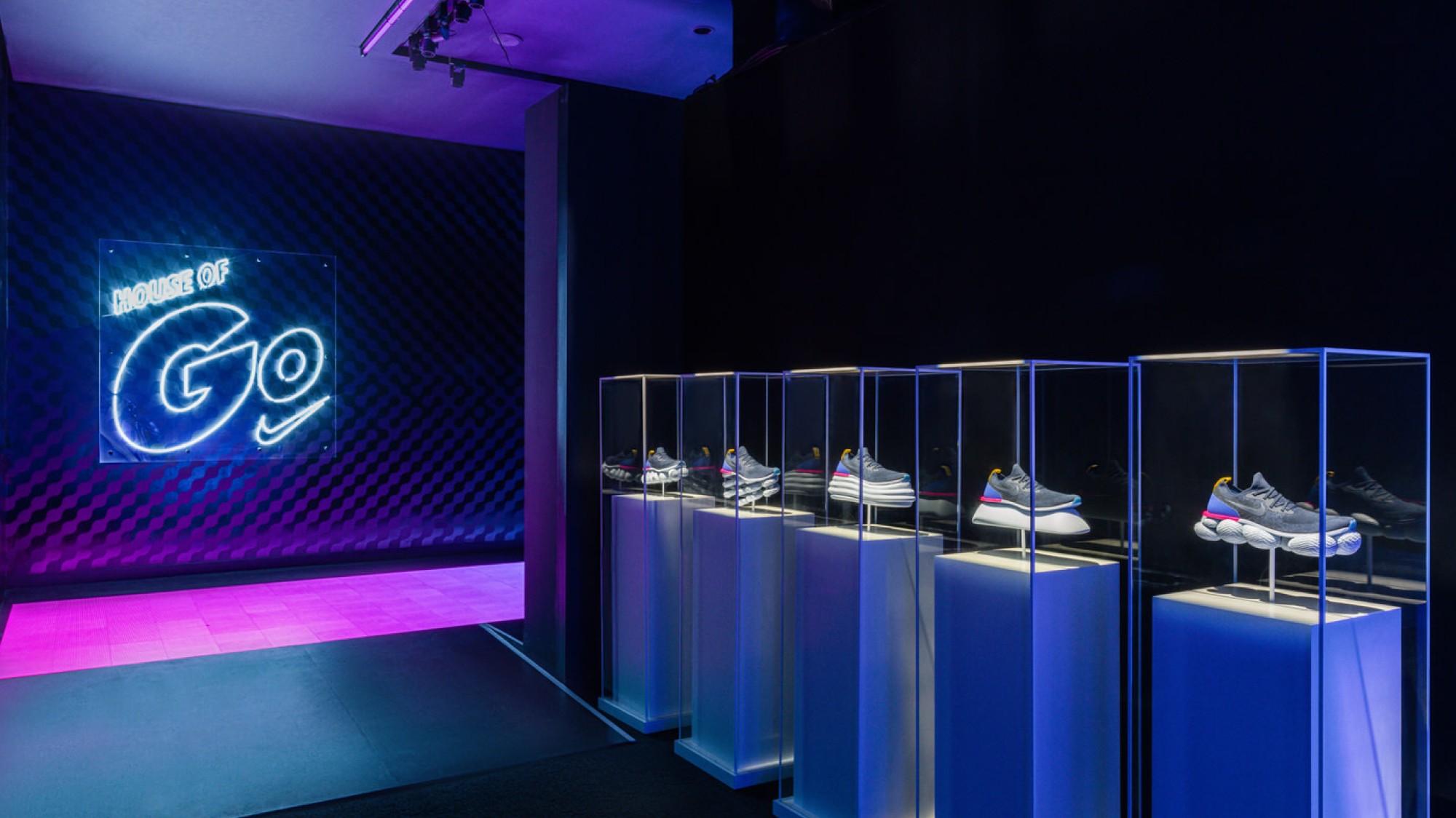House of Go was designed as an immersive expression of movement — a physical and digital world built to introduce Nike React through experience, not explanation. The space translated the feeling of React cushioning into an environment that runners could see, feel, and move through, turning product innovation into something visceral and memorable.